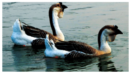 特征特性 : 品种体型硕大 ,羽毛灰褐色 ,腹羽灰白色。胫蹼桔红色略带黑斑。 肉瘤、 喙黑色。 成年体重公鹅10 - 12千克,母鹅 8 -10 千克。母鹅开产日龄在 200- 240 天,种鹅利用年限为 4-5 年,盛产期为第二至第四年。