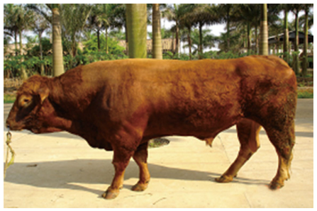 产量表现: 初生重可达35公斤, 13月龄体重达400多公斤,屠宰率达 56.7%,净肉净 47.3%。
