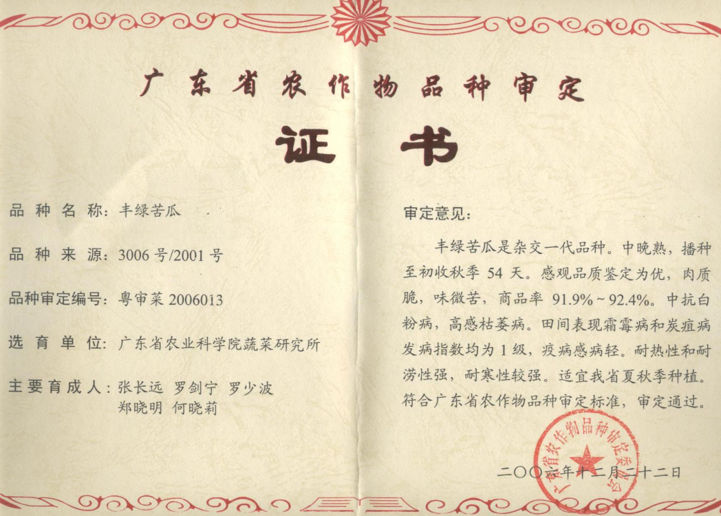 品种来源 由广东省农业科学院蔬菜研究所利用自交系3006#做母本,自交系2001#做父本配制而成的杂种一代(3006#×2001#)
