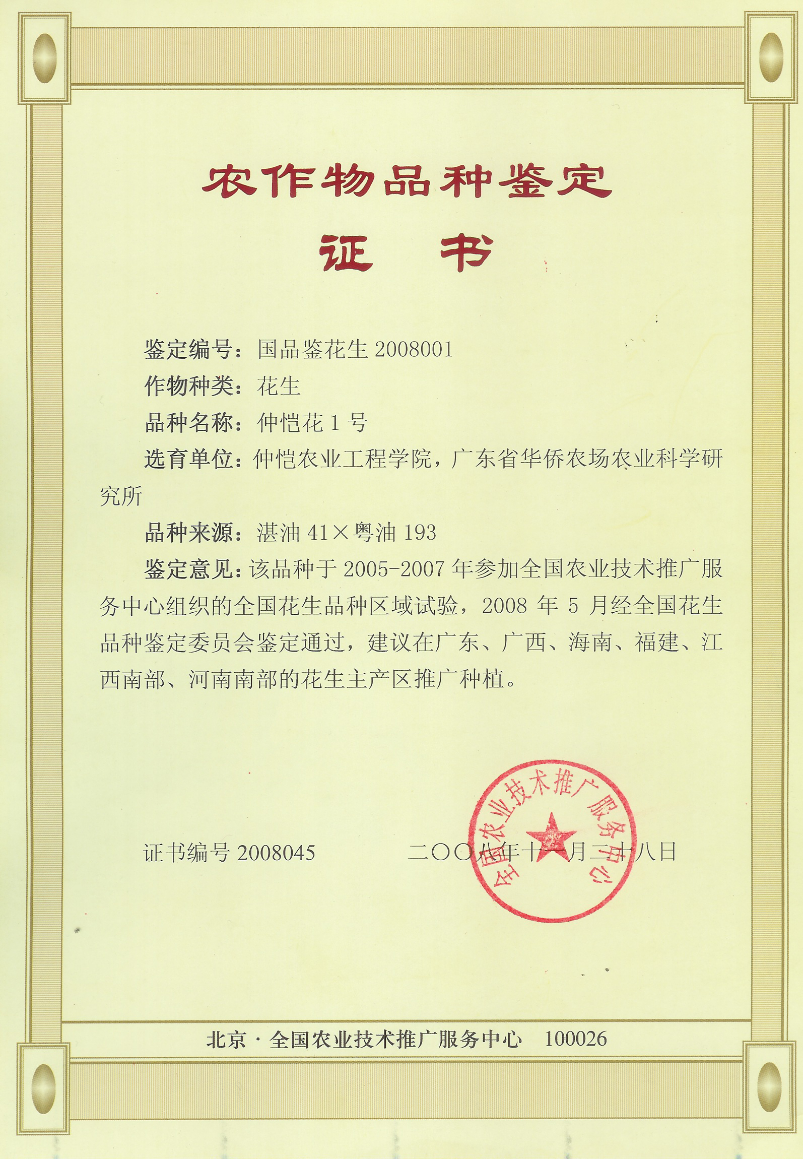 审定情况:2008年通过国家花生品种鉴定,2006年通过广东省品种审定。