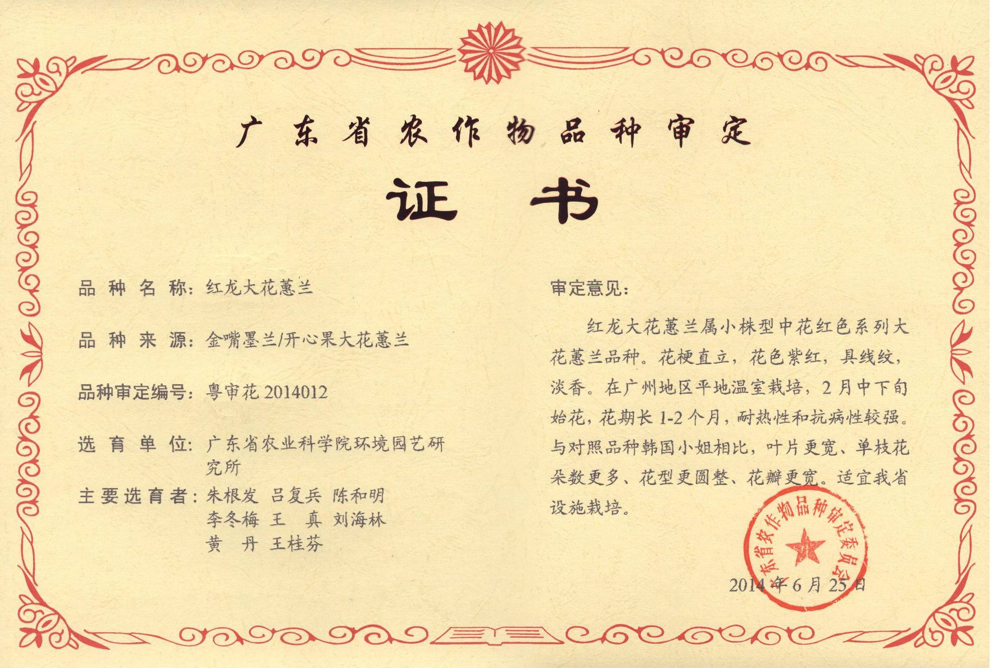 审定编号 粤审花2014012