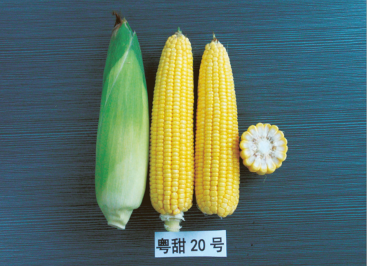 特征特性:东南地区出苗至成熟84天,与粤甜16号相当。幼苗叶鞘绿色,叶片绿色,叶缘绿色,花药黄绿色,颖壳绿色。株型半紧凑,株高219厘米,穗位高89厘米,成株叶片数18~20片。花丝浅绿色,果穗筒型,穗长21厘米,秃尖2.8~2.9厘米,穗轴白色,籽粒黄色、硬粒型甜质,百粒重(鲜籽粒)35.7克。接种鉴定,高抗腐霉茎腐病,感大斑病、小斑病和纹枯病。两年区域试验品尝鉴定,分别为87.6分和 86.9分;品质检测,皮渣率13.05%,水溶糖含量20.3%,还原糖含量11.8%。平均亩产鲜苞玉米1100公斤左右。