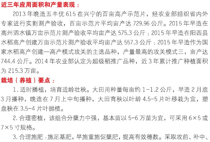 2018年农业主导品种:五丰优615
