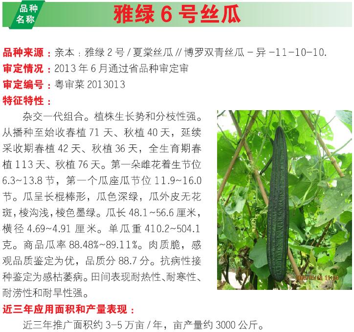 2018年农业主导品种:雅绿6号丝瓜