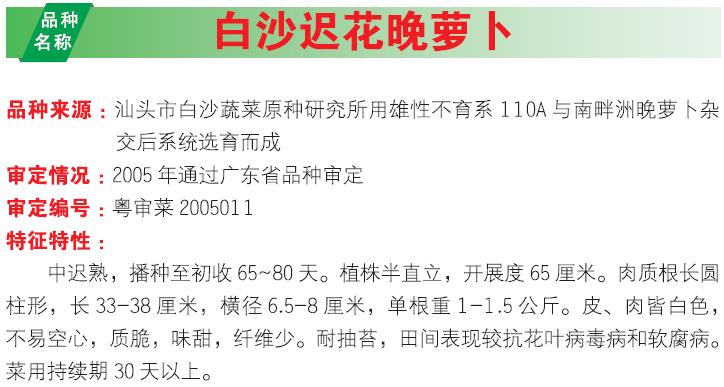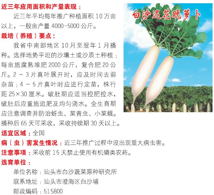 2018年农业主导品种:白沙迟花晚萝卜