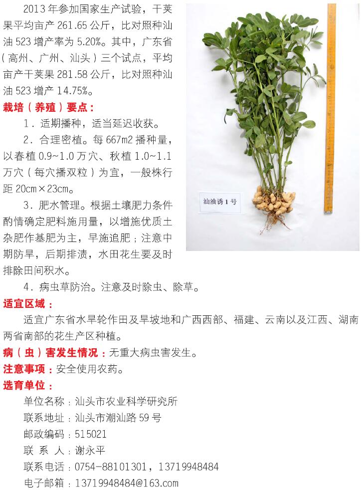 2018年农业主导品种:汕油诱1号