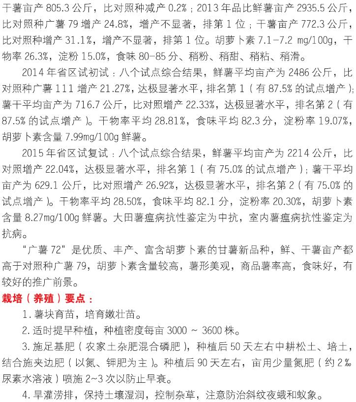 2018年农业主导品种:广薯72