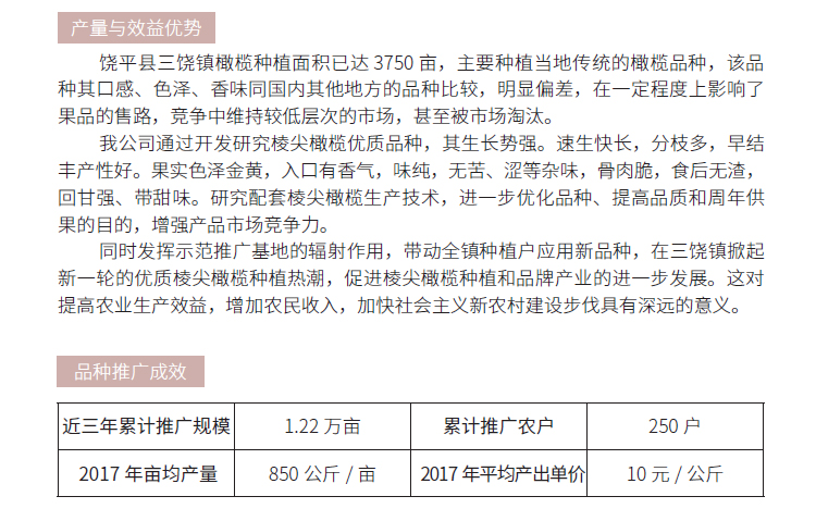 2019年农业主导品种:棱尖橄榄