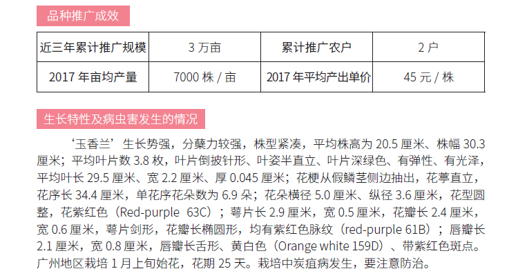 2019年农业主导品种:玉香兰