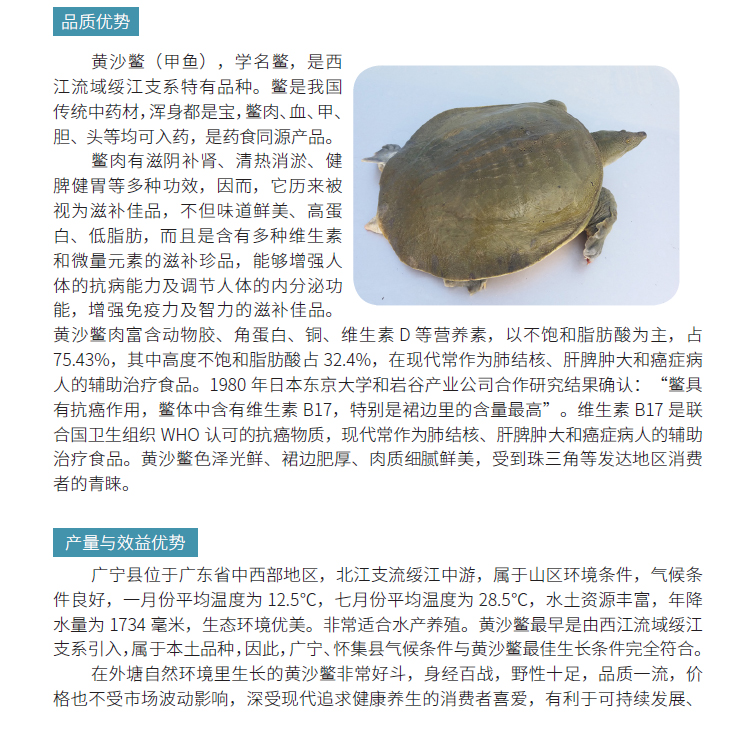 2019年农业主导品种:广宁县绥江金边黄沙鳖