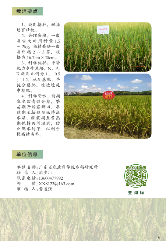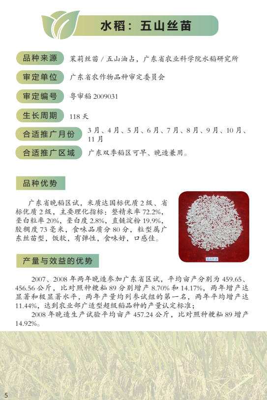 2022年农业主导品种:五山丝苗