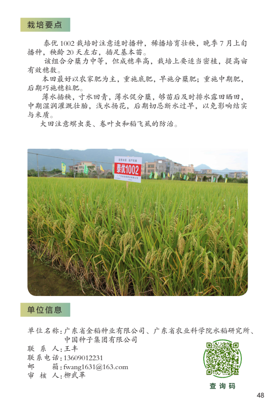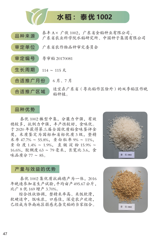 2022年农业主导品种:泰优1002
