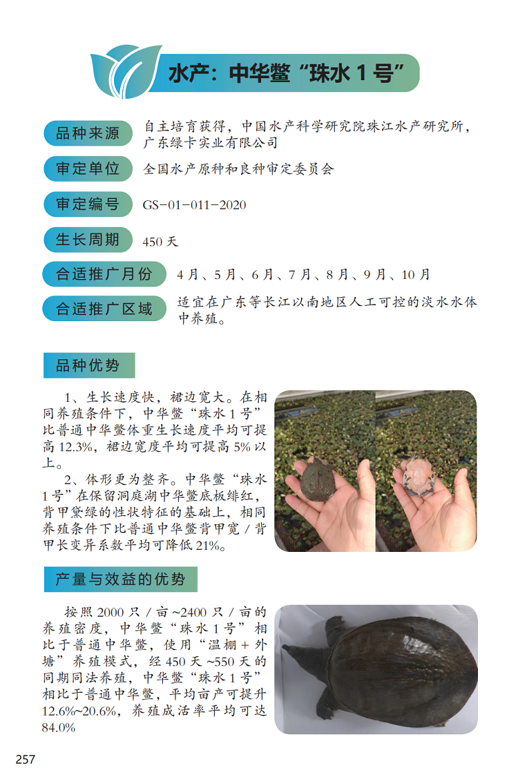 2022年农业主导品种:中华鳖“珠水 1 号”