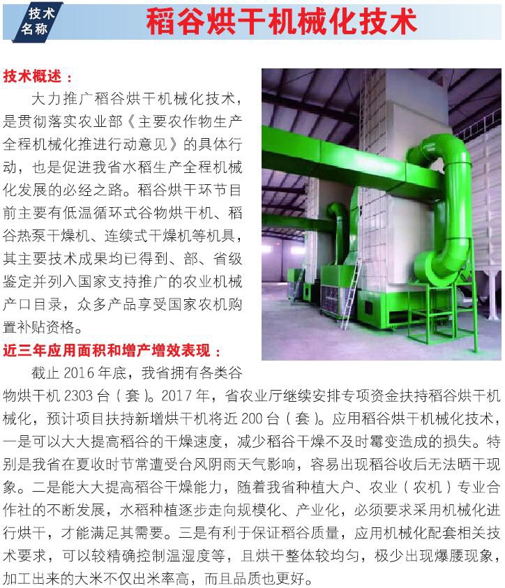 2018年主推技术:稻谷烘干机械化技术