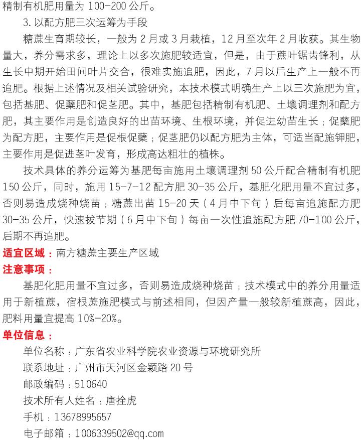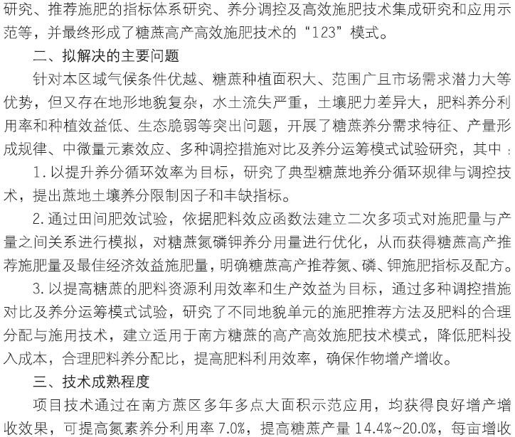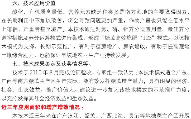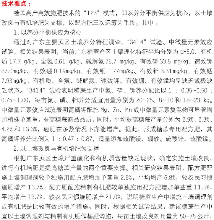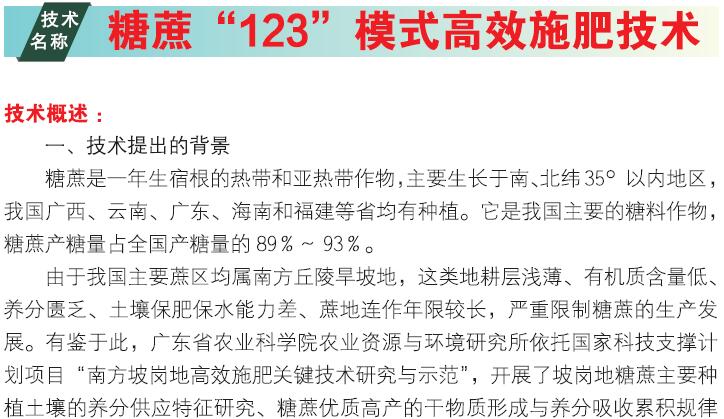 2018年主推技术:糖蔗“123”模式高效施肥技术