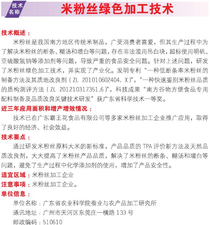 2018年主推技术:米粉丝绿色加工技术