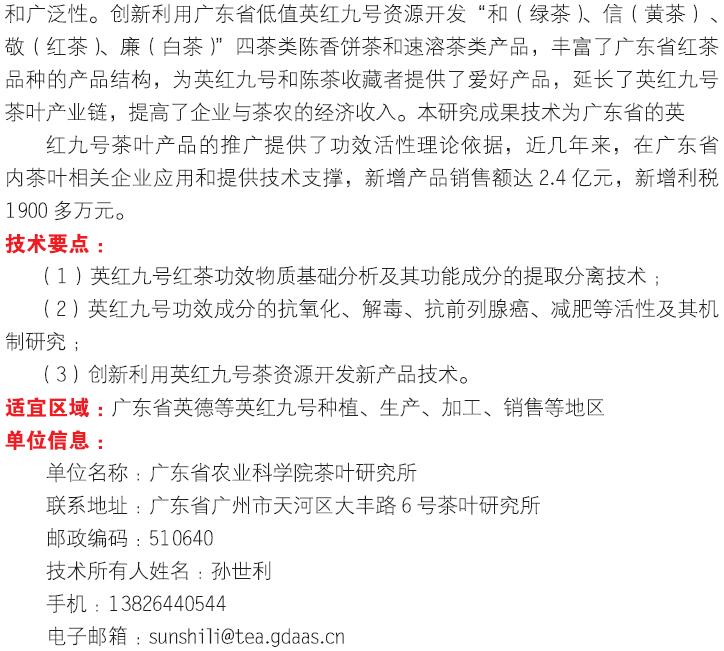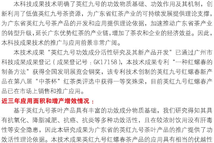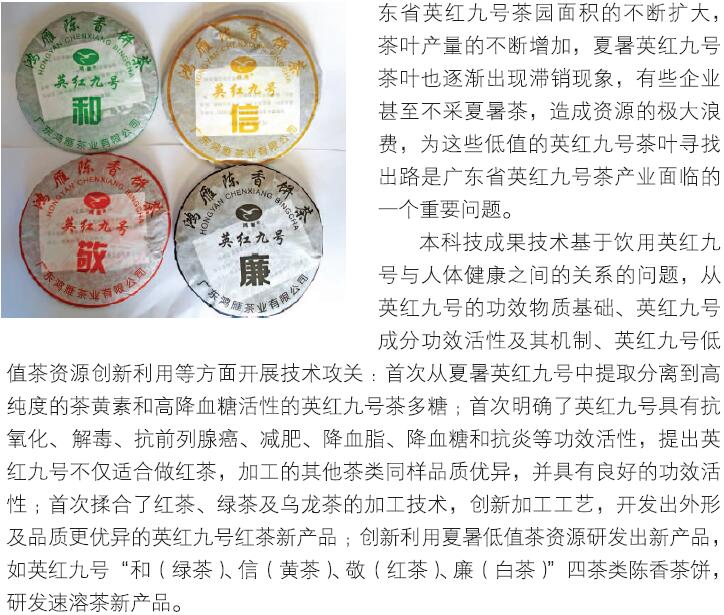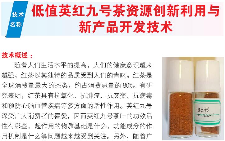 2018年主推技术:低值英红九号茶资源创新利用与新产品开发技术