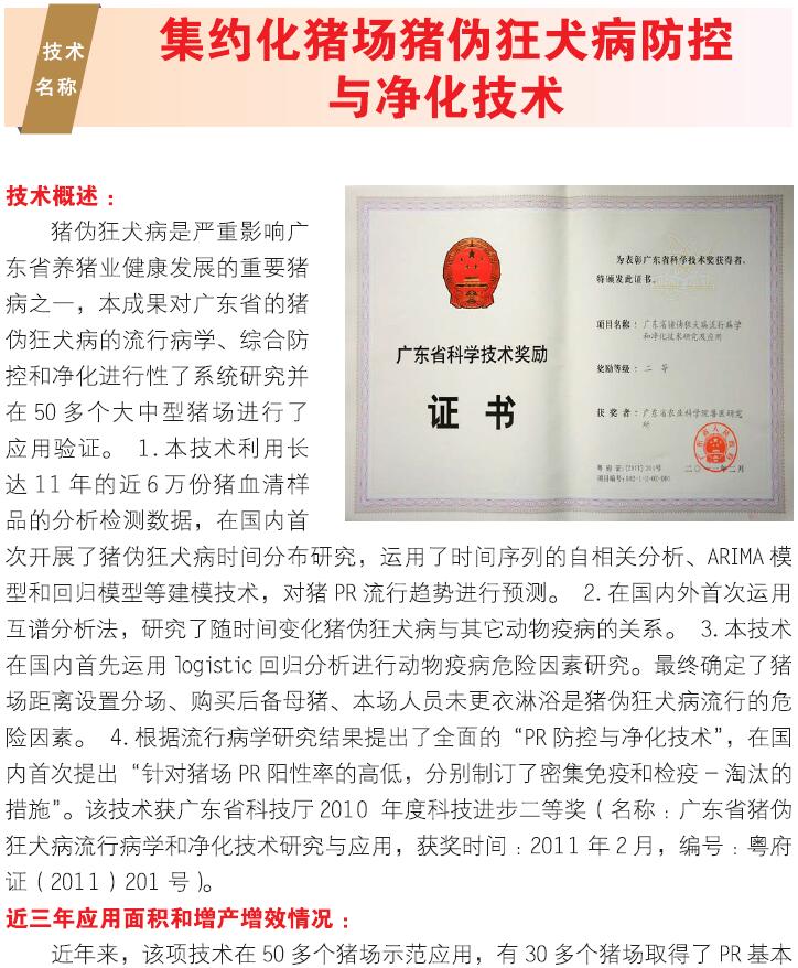 2018年主推技术:集约化猪场猪伪狂犬病防控与净化技术