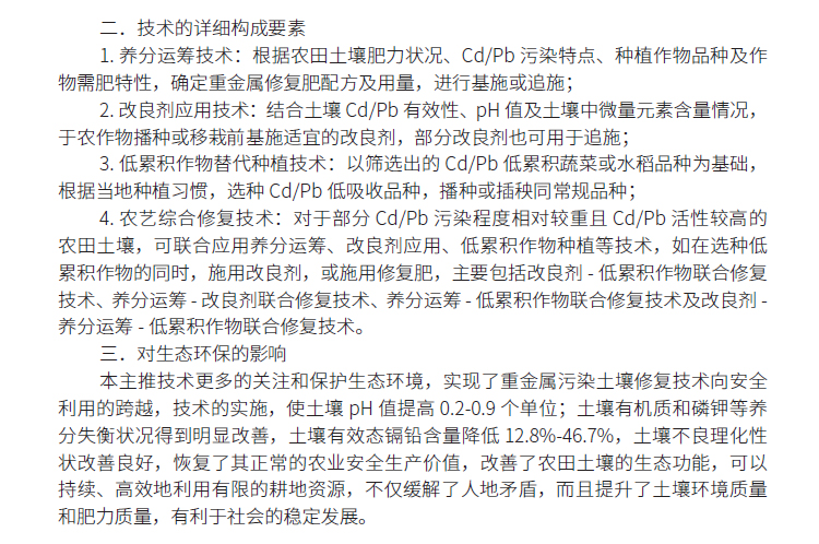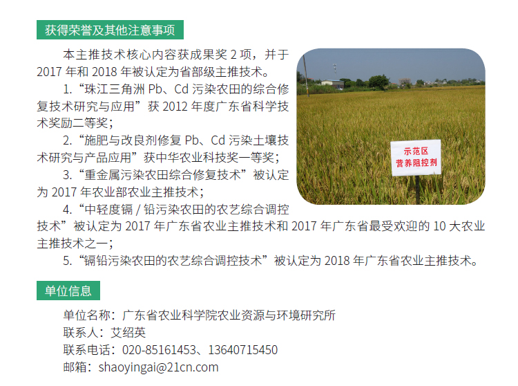 2019年主推技术:镉/ 铅污染农田的农艺综合修复技术