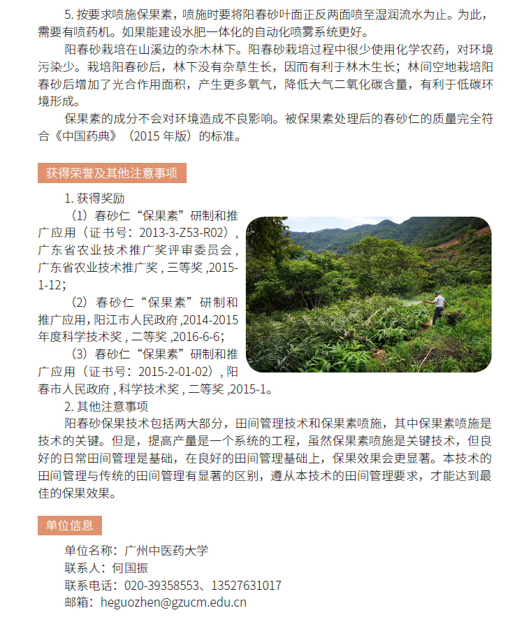 2019年主推技术:阳春砂保果技术