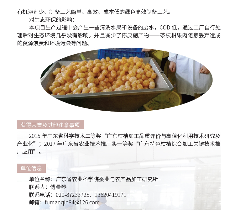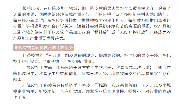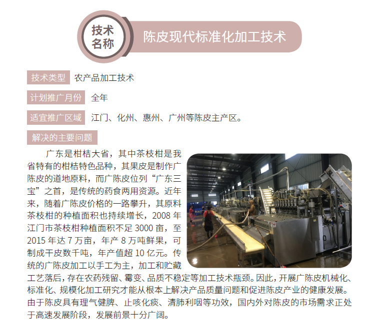 2019年主推技术:陈皮现代标准化加工技术