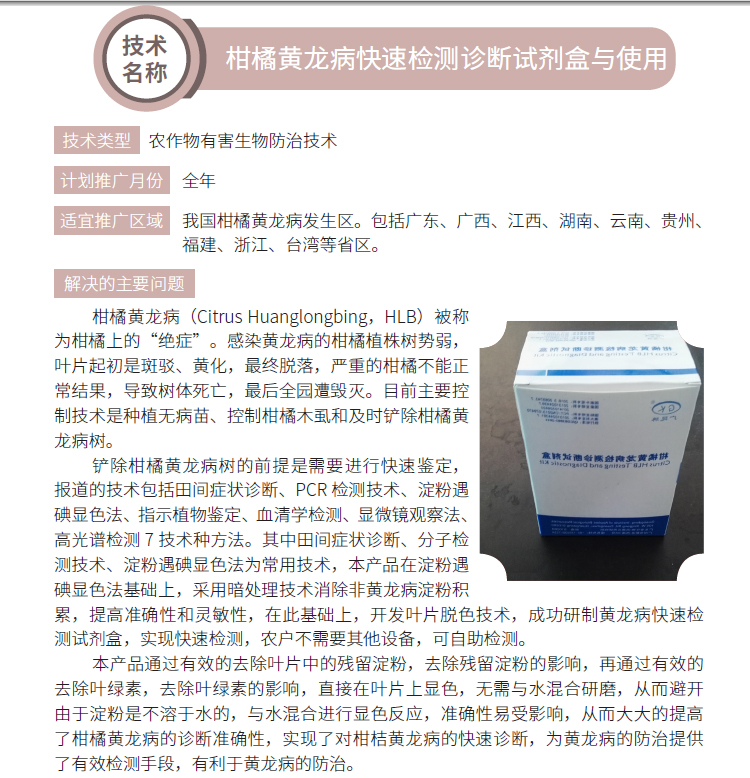 2019年主推技术:柑橘黄龙病快速检测诊断试剂盒与使用