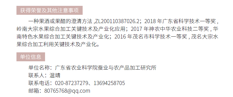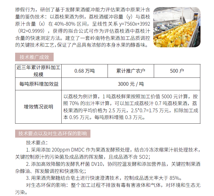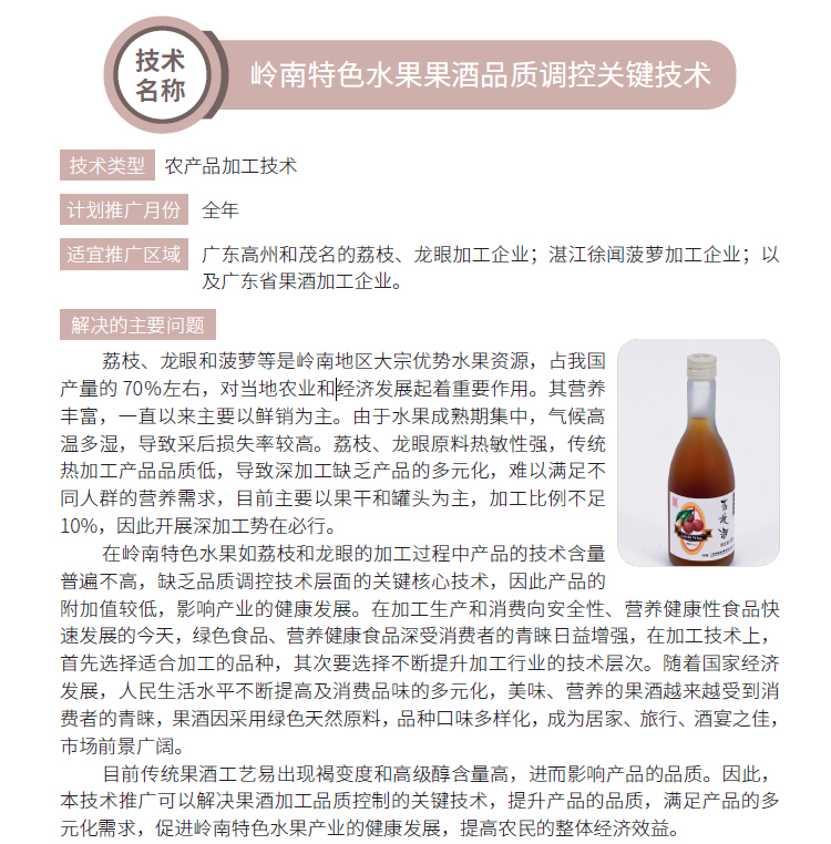 2019年主推技术:岭南特色水果果酒品质调控关键技术