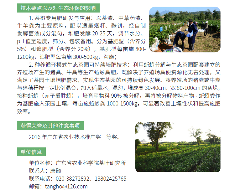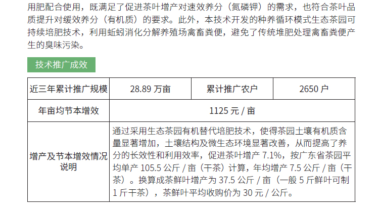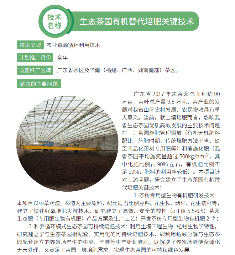 2019年主推技术:生态茶园有机替代培肥关键技术