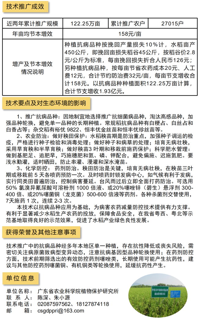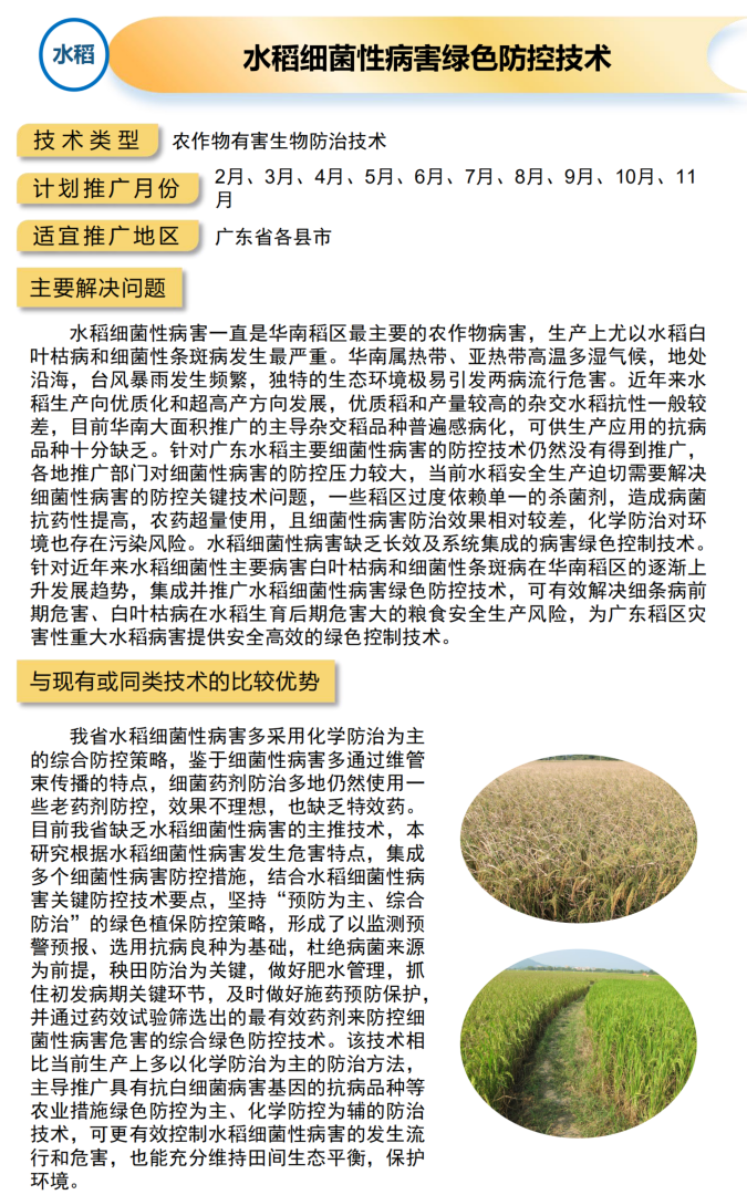 2021年农业主推技术:水稻细菌性病害绿色防控技术