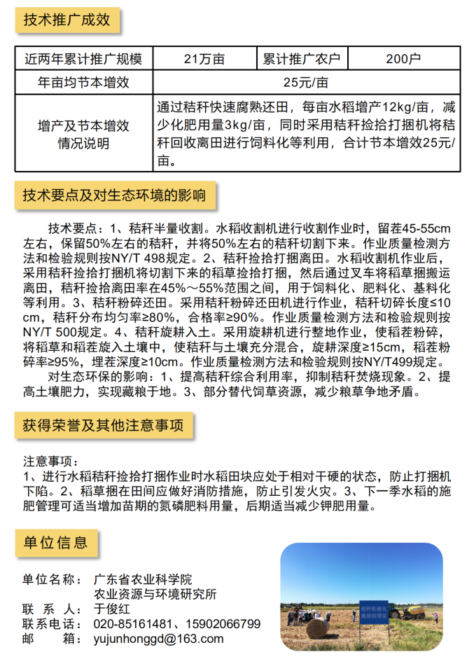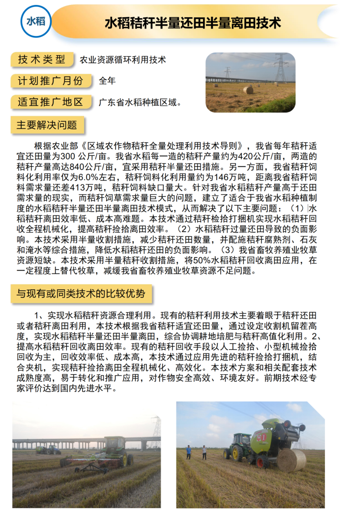 2021年农业主推技术:水稻秸秆半量还田半量离田技术