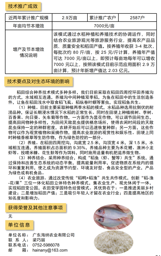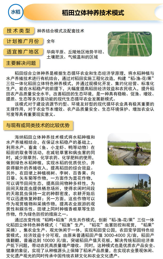 2021年农业主推技术:稻田立体种养技术模式
