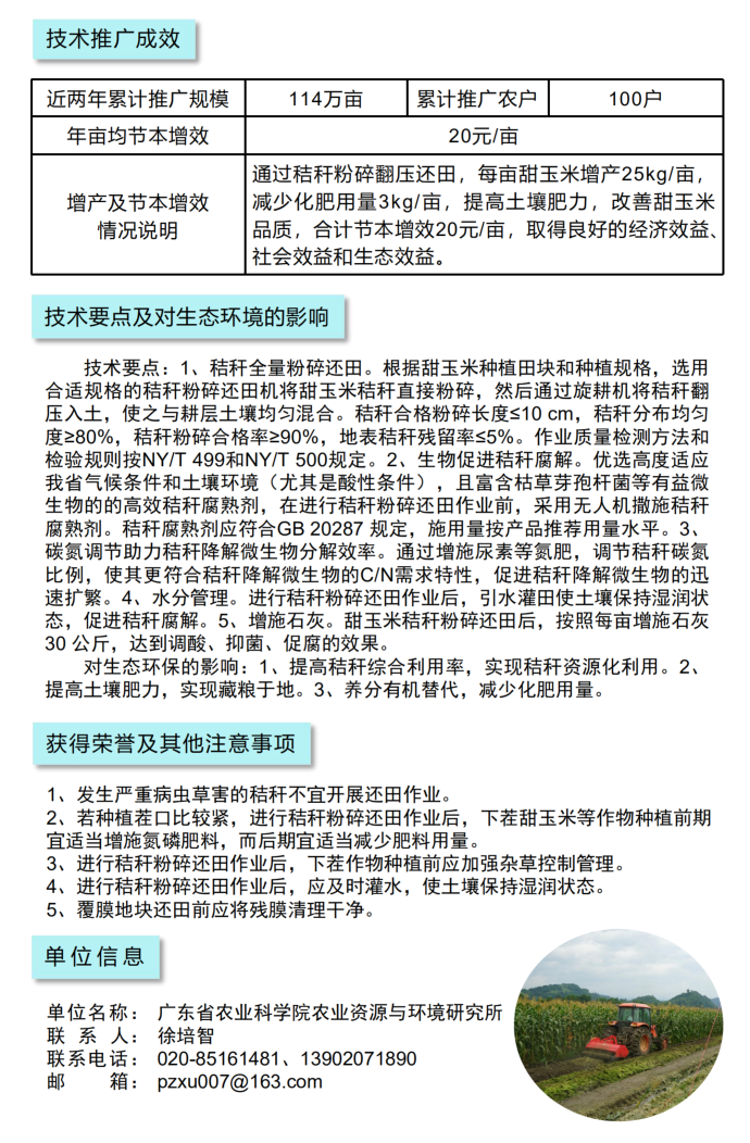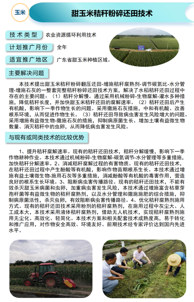 2021年农业主推技术:甜玉米秸秆粉碎还田技术