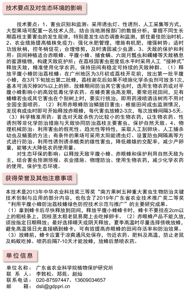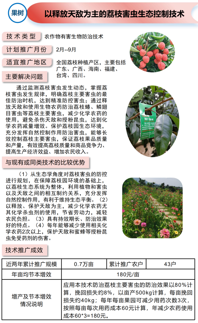 2021年农业主推技术:以释放天敌为主的荔枝害虫生态控制技术