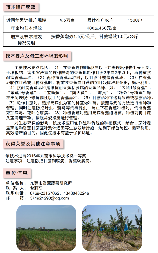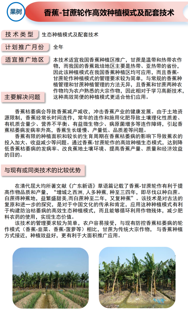 2021年农业主推技术:香蕉-甘蔗轮作高效种植模式及配套技术