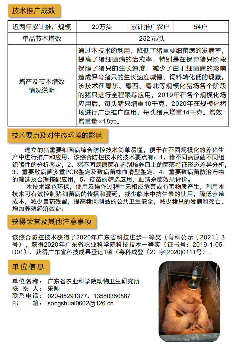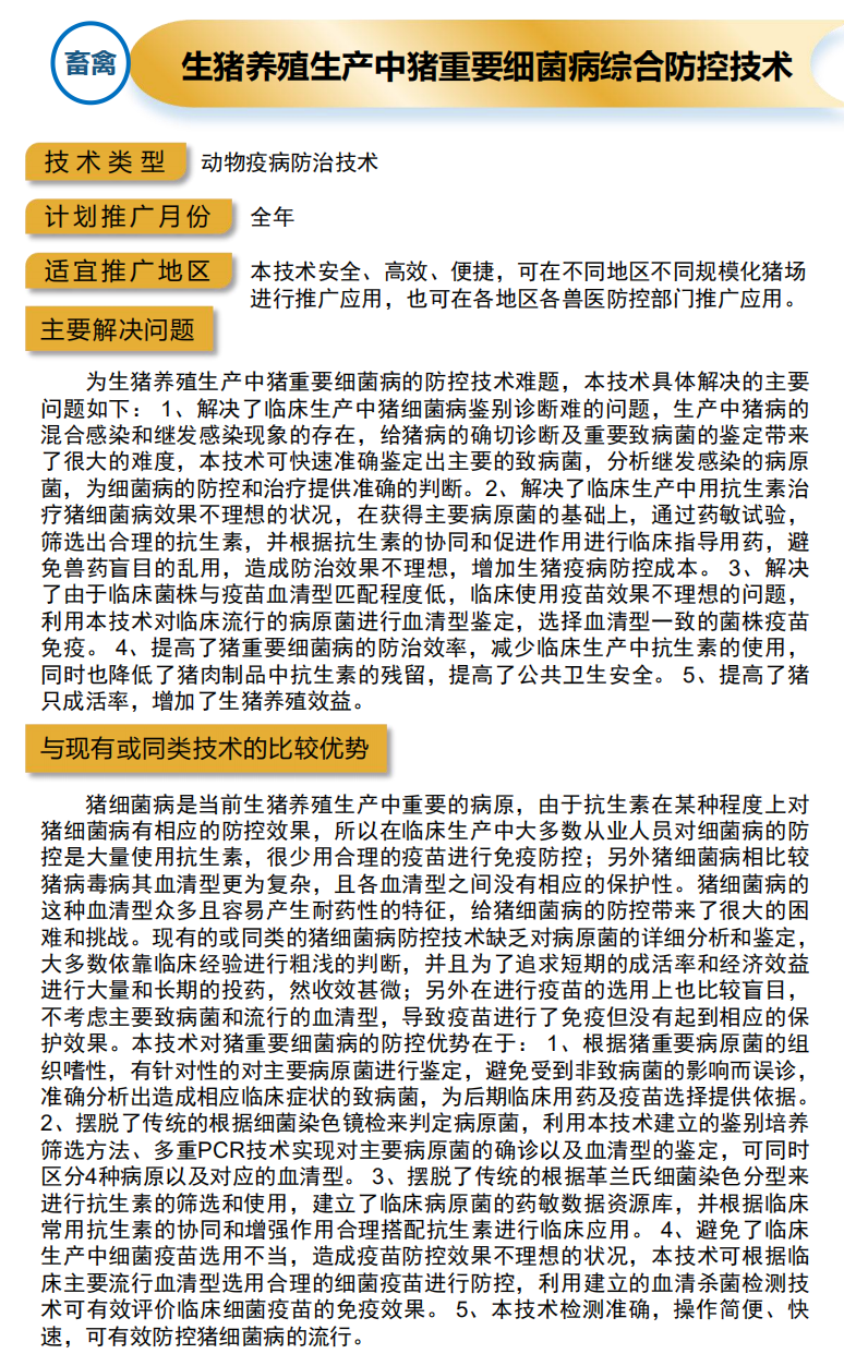 2021年农业主推技术:生猪养殖生产中猪重要细菌病综合防控技术