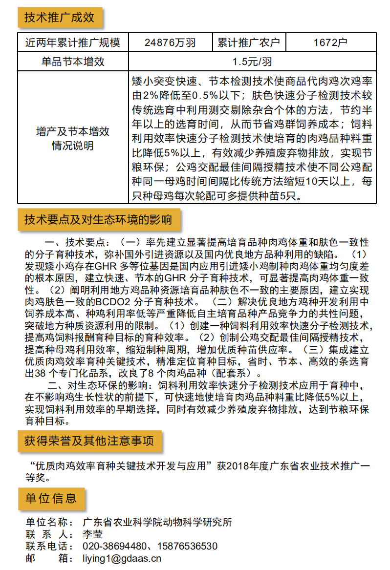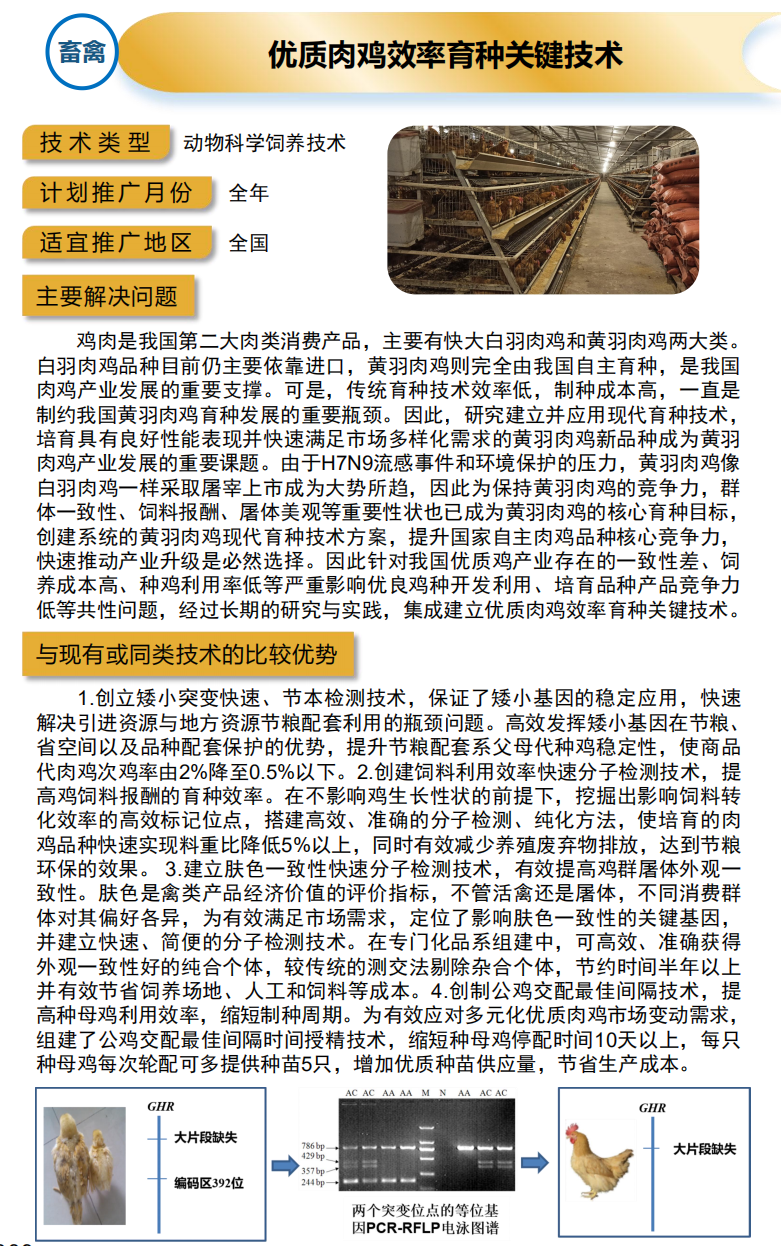 2021年农业主推技术:优质肉鸡效率育种关键技术