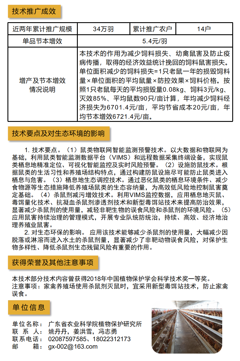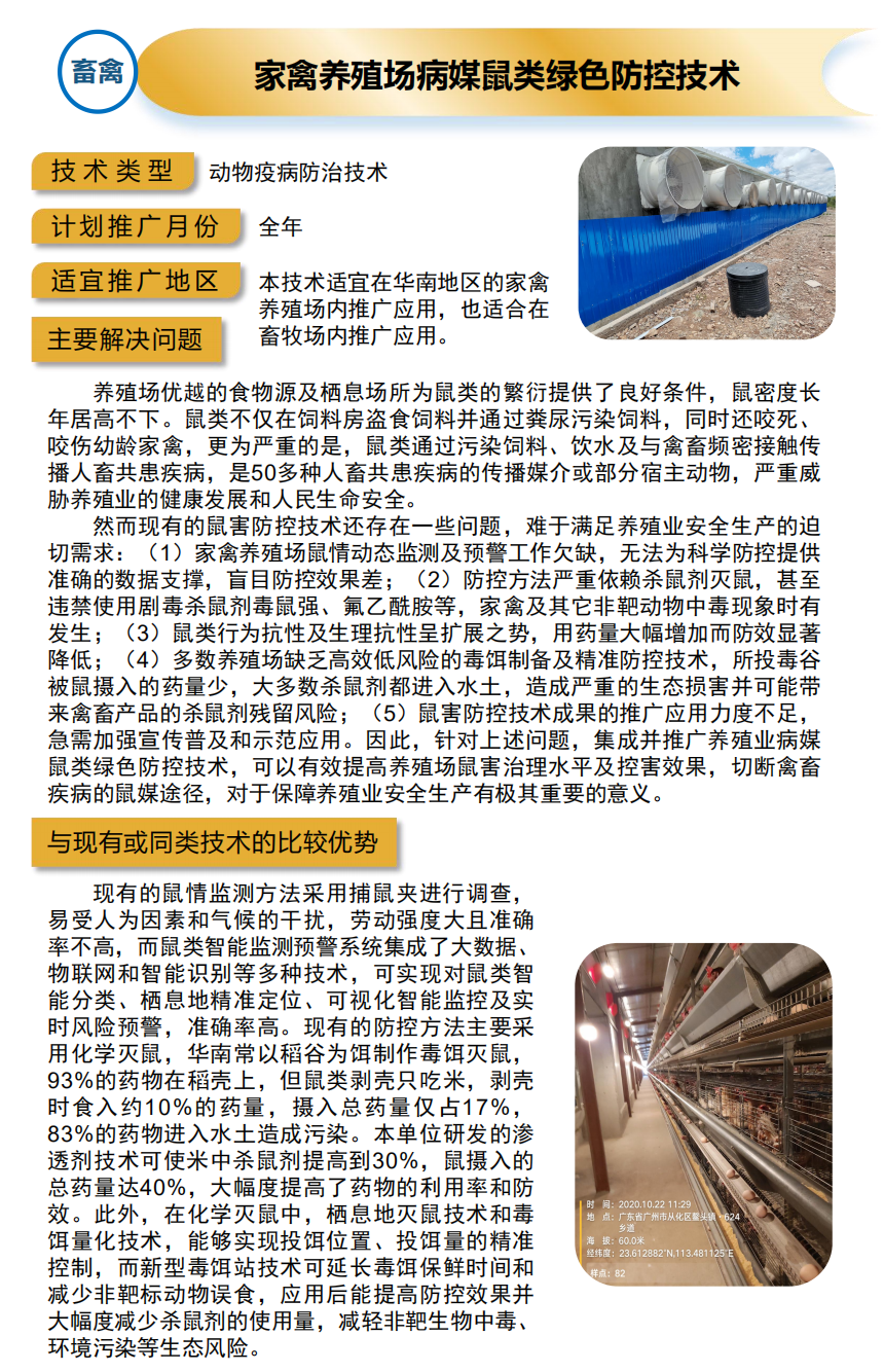 2021年农业主推技术:家禽养殖场病媒鼠类绿色防控技术