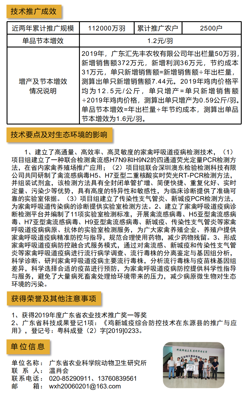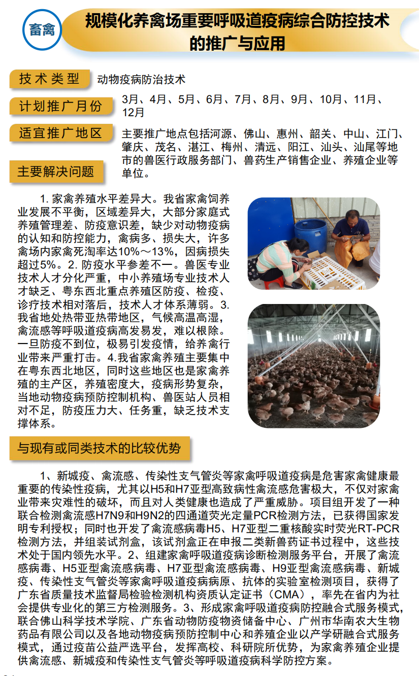 2021年农业主推技术:规模化养禽场重要呼吸道疫病综合防控技术 的推广与应用