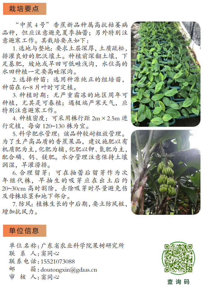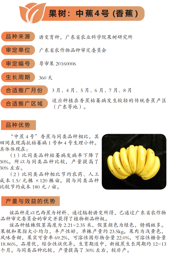 2022年农业主推技术:中蕉4号(香 蕉 )