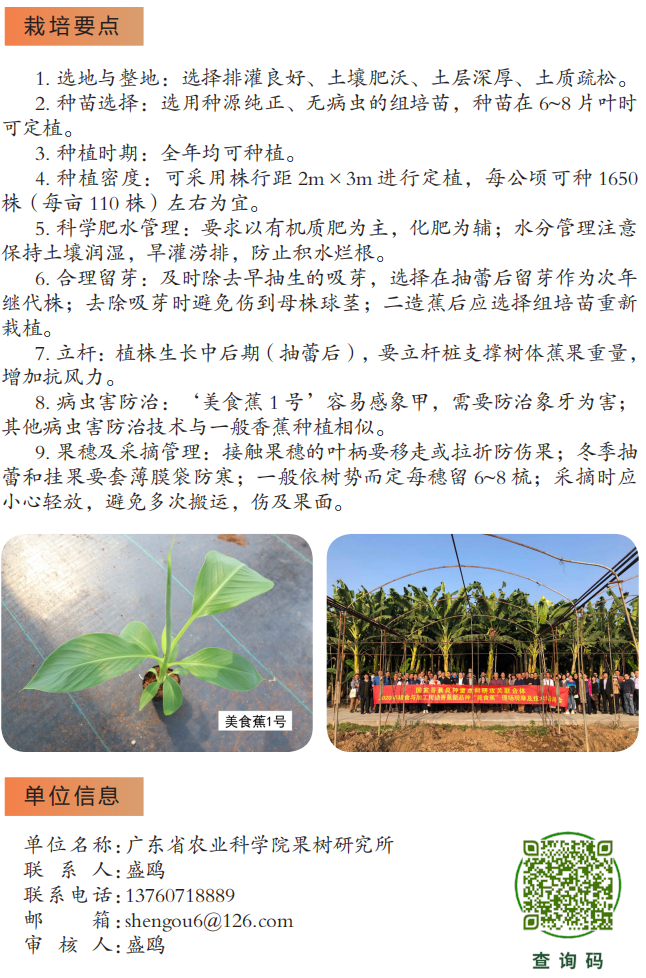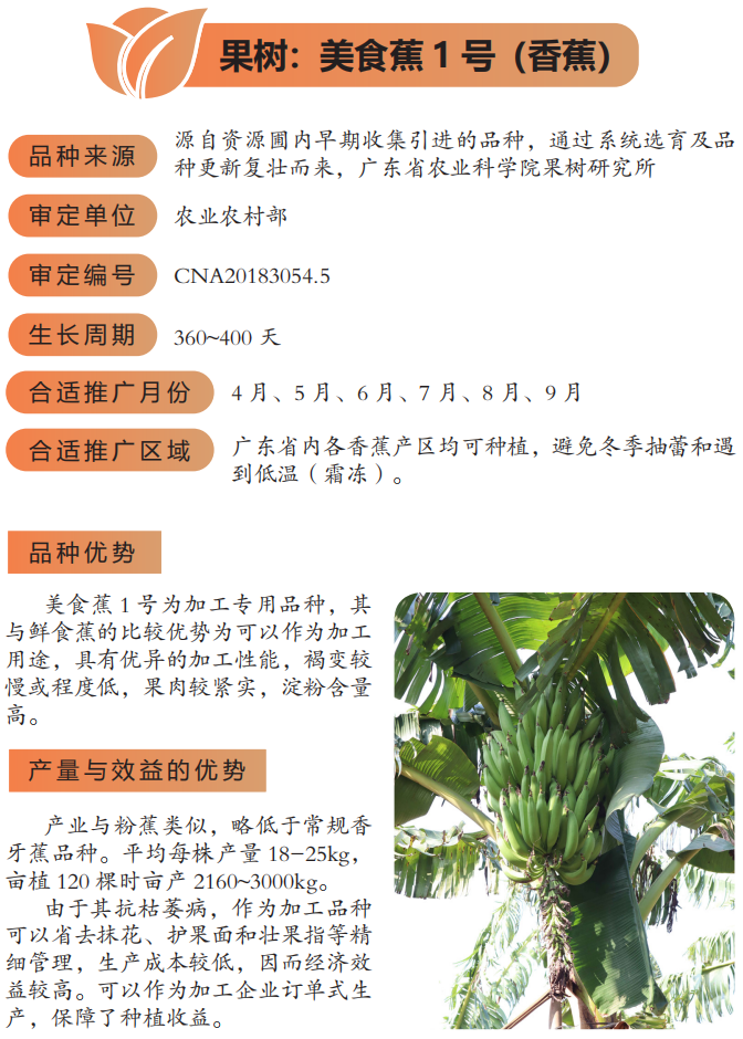 2022年农业主推技术:美食蕉 1 号(香蕉)