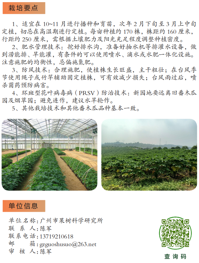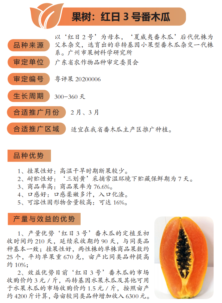 2022年农业主推技术:红日3号番木瓜