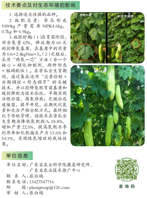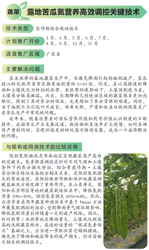 2022年农业主推技术:露地苦瓜氮营养高效调控关键技术