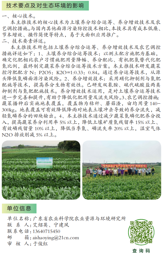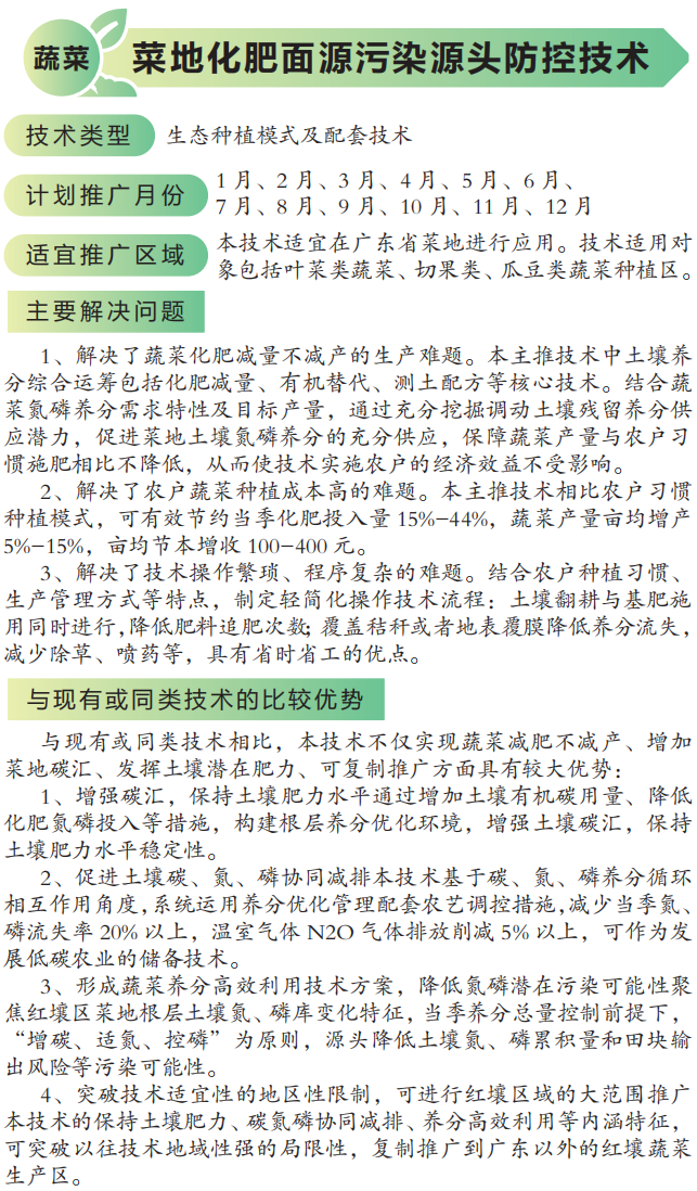 2022年农业主推技术:菜地化肥面源污染源头防控技术