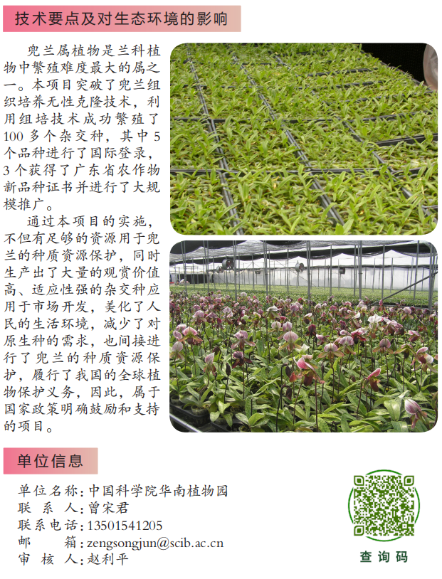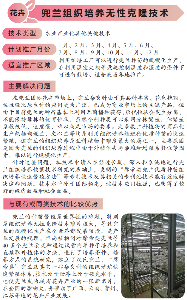 2022年农业主推技术:兜兰组织培养无性克隆技术