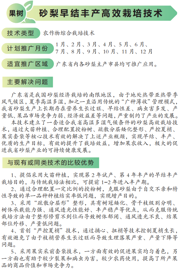 2022年农业主推技术:砂梨早结丰产高效栽培技术
