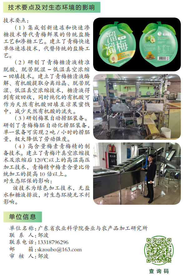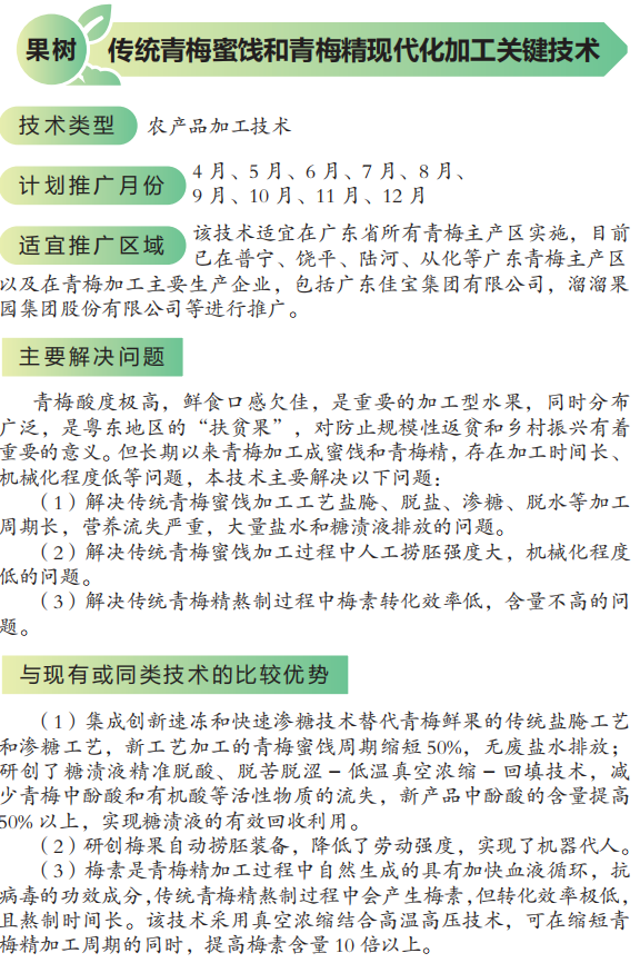 2022年农业主推技术:传统青梅蜜饯和青梅精现代化加工关键技术