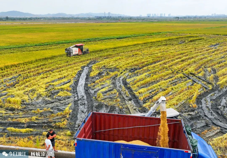 近日,汕头市濠江区河浦街道河玉围粮食绿色高产高效示范片里有260多亩晚稻开始收割,数台收割机在稻田间穿梭,留下一行行稻茬。伴随着收割机的轰鸣声,一茬茬稻秆被叶轮有序地卷入机器,脱粒、除秸、稻谷入车,一气呵成。
