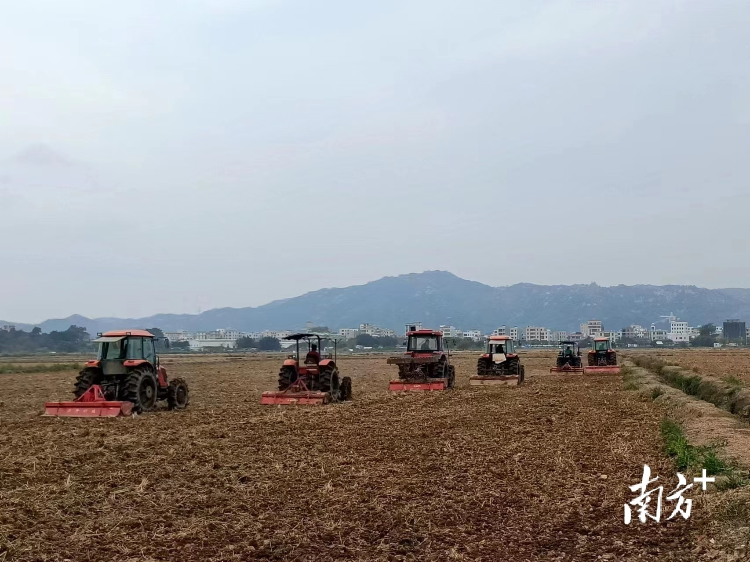 汕头市潮阳区顺杰农机种养专业合作社的农机设备开足马力备春耕。
