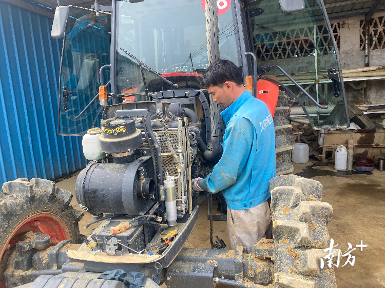 陆丰市支农农机专业合作社的设备检修运维技术员足以应对前期工作,春耕开始后还会有经销商驻镇抢修。图/颜裕成