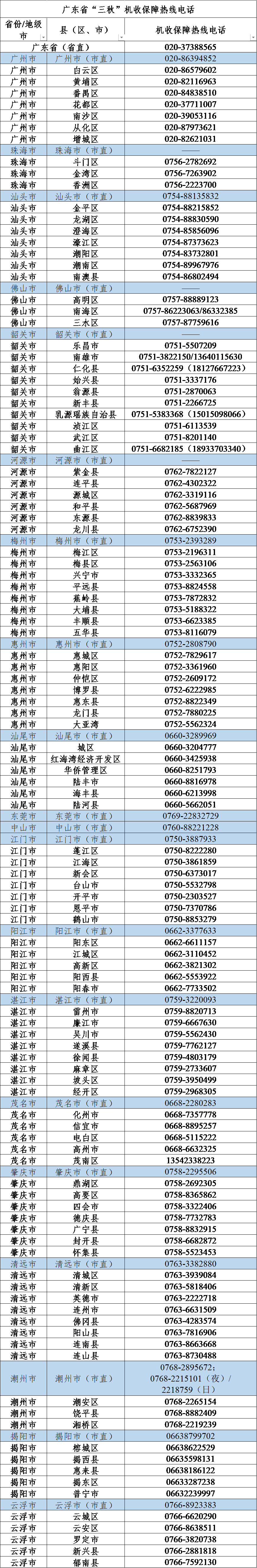 2025年“三秋”机收保障热线电话